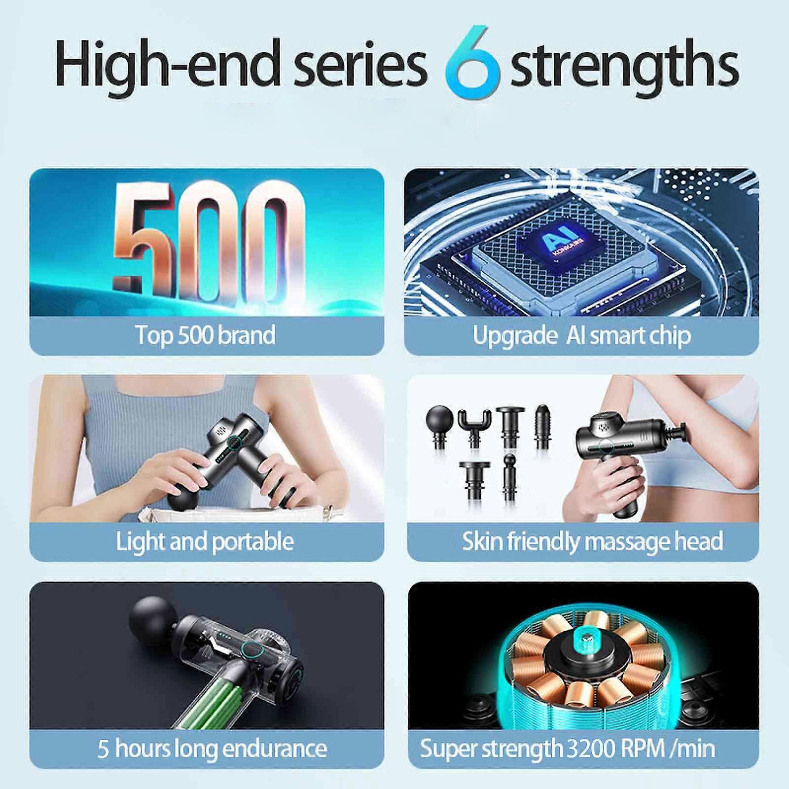 1 、 Intensità del massaggio regolabile: concediti il massimo relax e allevia la tensione muscolare con questa pistola portatile per massaggio muscolare. Con 6 velocità di massaggio regolabili, puoi personalizzare l'intensità per mirare ad aree specifiche e goderti il sollievo rilassante che porta. 2、Testine massaggianti sostituibili: con 6 testine massaggianti intercambiabili, questo massaggiatore è progettato per colpire vari gruppi muscolari, offrendo un sollievo preciso e migliorando la circolazione sanguigna, perfetto per favorire il recupero post-allenamento e alleviare la tensione muscolare. 3、Ricaricabile & Senza fili: la batteria al litio ricaricabile integrata da 1200 mAh offre una potenza di lunga durata per massaggi ininterrotti. Inoltre, la porta di ricarica di tipo C garantisce una ricarica rapida e conveniente (il cavo di ricarica è incluso). 4 、 Portatile da trasportare: il suo design elegante e le dimensioni compatte lo rendono facile da trasportare e utilizzare sempre e ovunque. Che tu sia a casa, in palestra o in viaggio, questo dispositivo sarà il tuo compagno ideale per il rilassamento e il ringiovanimento muscolare. 5、Ampia Applicazione: questa pistola per massaggio muscolare con un design a bassa rumorosità funziona silenziosamente, assicurando che non disturbi gli altri intorno a te. È adatto a una vasta gamma di persone, inclusi appassionati di fitness, impiegati, genitori e anziani.Panoramica:La pistola per massaggi può aiutarti ad alleviare l'indolenzimento muscolare causato dall'accumulo di acido lattico dopo un esercizio faticoso e alleviare i muscoli dei sedentari, degli impiegati e dei gruppi di esercizi fitness con percussioni ad alta frequenza. 6 livelli di velocità di vibrazione regolabili e 6 testine massaggianti sostituibili soddisfano le tue diverse esigenze.Tratti somatici:Intensità del Massaggio Regolabile: concediti il massimo relax e allevia la tensione muscolare con questa pistola portatile per massaggio muscolare. Con 6 velocità di massaggio regolabili, puoi personalizzare l'intensità per mirare ad aree specifiche e goderti il sollievo rilassante che porta.Testine massaggianti sostituibili: con 6 testine massaggianti intercambiabili, questo massaggiatore è progettato per colpire vari gruppi muscolari, offrendo un sollievo preciso e migliorando la circolazione sanguigna, perfetto per favorire il recupero post-allenamento e alleviare la tensione muscolare.Ricaricabile e senza fili: la batteria al litio ricaricabile integrata da 1200 mAh offre una potenza di lunga durata per massaggi ininterrotti. Inoltre, la porta di ricarica di tipo C garantisce una ricarica rapida e conveniente (il cavo di ricarica è incluso).Portatile da Trasportare: il suo design elegante e le dimensioni compatte lo rendono facile da trasportare e utilizzare sempre e ovunque. Che tu sia a casa, in palestra o in viaggio, questo dispositivo sarà il tuo compagno ideale per il rilassamento e il ringiovanimento muscolare.Ampia Applicazione: questa pistola per massaggio muscolare con un design a bassa rumorosità funziona silenziosamente, assicurando che non disturbi gli altri intorno a te. È adatto a una vasta gamma di persone, inclusi appassionati di fitness, impiegati, genitori e anziani.Specificazione:Capacità della batteria: 7,4 V 1200 mAhPotenza nominale: 18 WVelocità del motore: max. 3200 giri/minChiodatura: 6Materiale: ABSColore: GrigioFormato del pacchetto: 166 * 130 * 50 mm / 6,53 * 5,12 * 1,96 polliciPeso del pacchetto: 800 g / 28,22 onceElenco dei pacchetti:1 * Massaggiatore Corpo Principale6 * Testa di ricambio1 * Cavo di ricarica1 * Massaggiatore Corpo Principale6 * Testa di ricambio1 * Cavo di ricarica Marchio: Unbranded Categoria:Massaggiatori