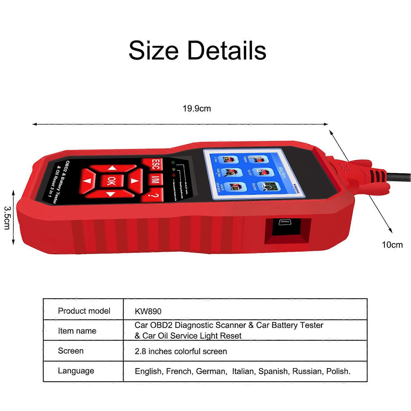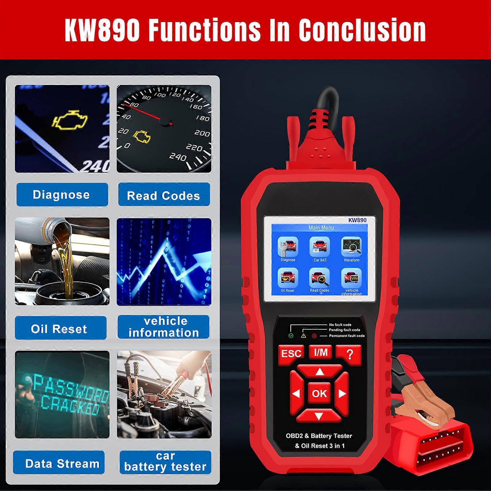 Lettore di codici OBDII automatico con funzione di ripristino dell'olio di prova della batteria Scanner diagnostico per auto dopo il 1996Tratti somatici:1 、 【RISPARMIA TEMPO E DENARO】 Il lettore di computer per auto KW890 è uno strumento diagnostico professionale per veicoli per la lettura di codici memorizzati, test del monitor O2, cancellazione dei codici di errore, test del monitor di bordo, lettura del fermo immagine, test dei componenti, lettura del flusso di date, informazioni sul veicolo, prontezza I / M, codici di errore diagnostici di ricerca, sistema di evacuazione, test di tensione della batteria 2 、 【NON SOLO SPEGNERE LA SPIA DEL MOTORE DI CONTROLLO】 A differenza di altri scanner diagnostici per auto economici, il lettore di codici OBDII KW850 copre tutte le funzioni diagnostiche OBDII / EOBD per il sistema motore. Il test del sensore O2, il test dei sistemi EVAP e il test di monitoraggio a bordo ti offrono il pieno controllo dello stato di marcia del tuo veicolo, mentre un display grafico e numerico del flusso di dati in tempo reale ti aiuterà a scoprire le letture difettose del sensore. (Si prega di notare: questa funzione è solo per il sistema MOTORE). 3 、 【MIGLIORE SUL MERCATO】 Lo strumento diagnostico per auto con lettore di codici KW890 viene fornito con l'interfaccia diagnostica intuitiva e l'algoritmo software ottimizzato, rende la diagnosi 2-3 volte più veloce rispetto ad altri scanner OBDII. Con 2. 8'' Lo schermo LCD a colori e l'analisi grafica del sensore in tempo reale possono aiutarti a identificare rapidamente le letture errate in pochi secondi. Il cavo diagnostico extra lungo (59') fornito nella confezione, ti consente di diagnosticare liberamente le tue auto anche al di fuori dei veicoli. 4 、 【COMPATIBILITÀ UNIVERSALE E FACILE DA USARE】 Supporta tutti i protocolli OBDII, per tutti i veicoli dopo 1996 anni, IISO 9141, KWP2000, SAE J1850, CAN, J1850 VPW, J1850 PWM. La sezione di rilevamento della batteria è in grado di rilevare purché si tratti di batterie al piombo da 6-12 V. I modelli globali sono prodotti dopo il 1996.Basta collegarlo alla porta OBD II della tua auto, accendere l'accensione e sei pronto per partire. Non è necessaria alcuna batteria o installazione di app complicate. 5 、 Rispetto al popolare KW850 con il marchio KONNWEI, abbiamo aggiunto la funzione di ripristino del tester della batteria e della lampada di manutenzione, KW890 è anche un tester digitale per batterie al piombo acido da 12 V, SUV, autocarri leggeri.Specificazione:Rispetto al popolare KW850 con il marchio KONNWEI, abbiamo aggiunto la funzione di ripristino del tester della batteria e della lampada di manutenzione,KW890 è anche un tester digitale per batterie al piombo da 12 V per auto, SUV, autocarri leggeri.Indicazioni:Modello: KW890Nome dell'articolo: scanner diagnostico OBDII per auto e tester per batteria per auto e ripristino della spia di servizio dell'olio per autoSchermo: schermo colorato da 2,8 polliciLingua: Inglese, Francese, Tedesco, Italiano, Spagnolo, Russo, PoslishDimensioni del prodotto: 20 * 10 * 3,5 cmFormato del pacchetto: 25,5 * 18,5 * 7 cmPeso del pacchetto: 905 gCaratteristiche speciali: ISO 9141, KWP2000, SAE J1850, CAN, J1850 VPW, J1850 PWM, per batterie al piombo-acido 6-12V, per tutti i veicoli dopo 1996 anni.Applicazione: 12V OBDII. & 1 auto, autocarro leggero, berline, SUVFunzione principale: lettura e cancellazione dei codici di errore, lettura dei dati del sensore in tempo reale, visualizzazione del flusso di dati, ricerca DTC, suggerimenti per la risoluzione dei problemi del codiceFunzione speciale: Oil Reset Questa funzione consente di eseguire il reset del sistema di durata dell'olio motore, che calcola un intervallo di sostituzione ottimale della durata dell'olio in base alle condizioni di guida e al clima del veicolo.Questa funzione può essere eseguita nei seguenti casi: 1. Se la spia di servizio è accesa, è necessario fornire assistenza per l'auto. Dopo l'assistenza, è necessario reimpostare il chilometraggio o il tempo di guida in modo che la spia di servizio si spenga e il sistema abiliti il nuovo ciclo di manutenzione.2. Dopo aver cambiato l'olio motore o gli apparecchi elettrici che monitorano la durata dell'olio. È necessario resettare la spia di servizio.Elenco dei pacchetti:1*Ospite1 * Scatola di imballaggio1 * Borsa in poliestere1 * Manuale dell'utente1 * Cavo USB1 * Cavo OBD Marchio: Unbranded Categoria:Scanner per diagnosi veicolo